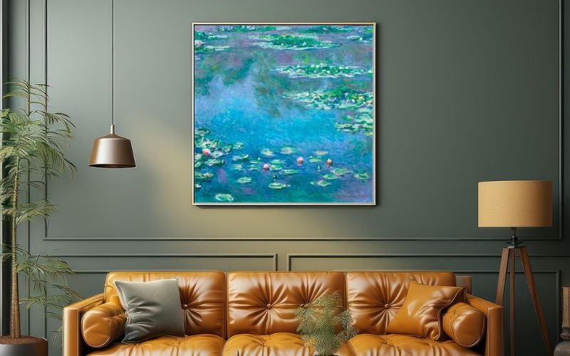 フレームという枠に縛られない自由な筆致が、壁面に光の粒を散りばめるような効果を生み、空間をふんわりと明るく底上げしてくれます。「心のリセット」が必要なワークスペースや、一日の終わりを過ごすリビングに配置すれば、モネが愛した繊細な色彩の重なりが、住まう人の感性を優しく解きほぐしてくれるはずです。