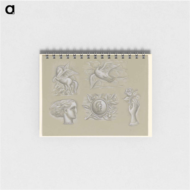 Pegasus, duif, vrouwenhoofd, wapen en hand met roos - レオ ヘステル Memo. - B6(128×182) ...は取り寄せ中で入荷次第発送します。