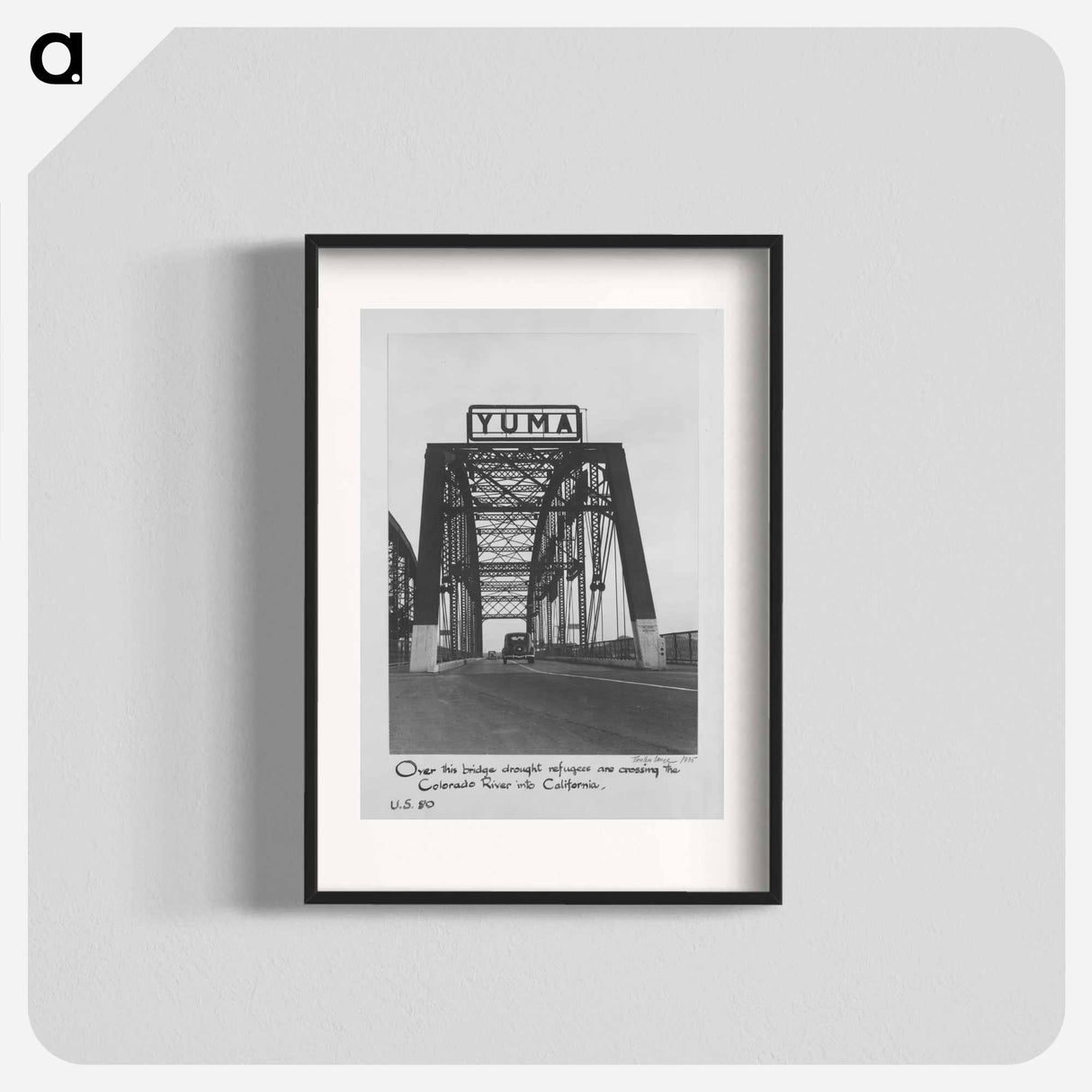 Over this bridge drought refugees are crossing the Colorado River into California. U.S. 80 - ドロテア ラング Poster.