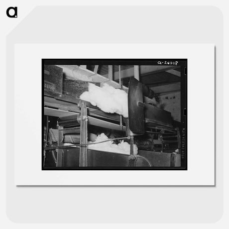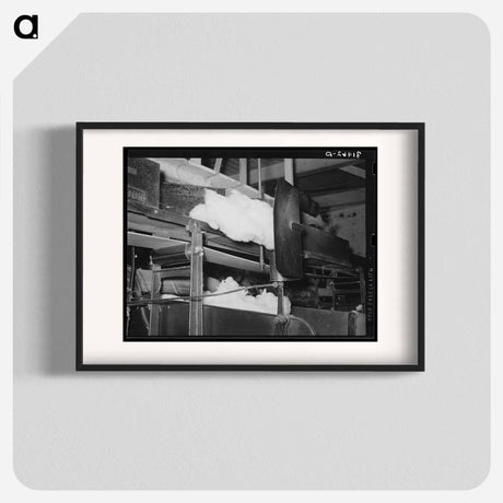 Cotton from the bale is transported by belt to machine for making cotton bats - ドロテア ラング Poster.