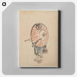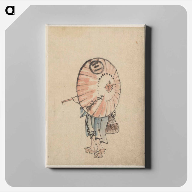 A person walking to the left, mostly obscured by an open parasol carried over the shoulder, wearing kimono and geta, and carrying a bag in right hand by Katsushika Hokusai - 葛飾 北斎 Canvas.