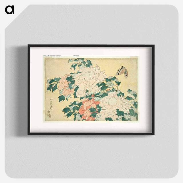 Hokusai's Peonies and Butterfly - 葛飾 北斎 Poster.