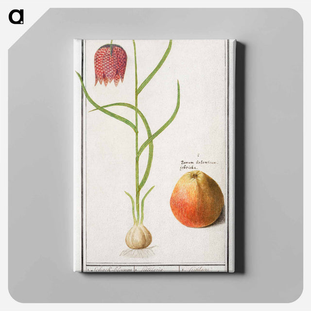 Snake's head fritillary, Fritillaria meleagris and an apple - アンセルムス ボエティウス デ ブート Canvas. - A5(148×210) ...は取り寄せ中で入荷次第発送します。