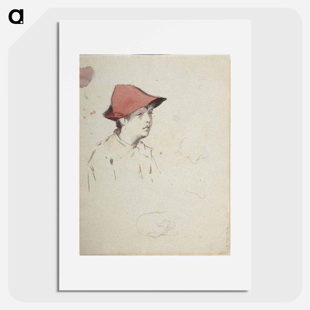 Bertta Edelfelt, taiteilijan sisar punainen hattu päässään - アルバート エーデルフェルト Poster. - A5(148×210) / なし ...は取り寄せ中で入荷次第発送します。