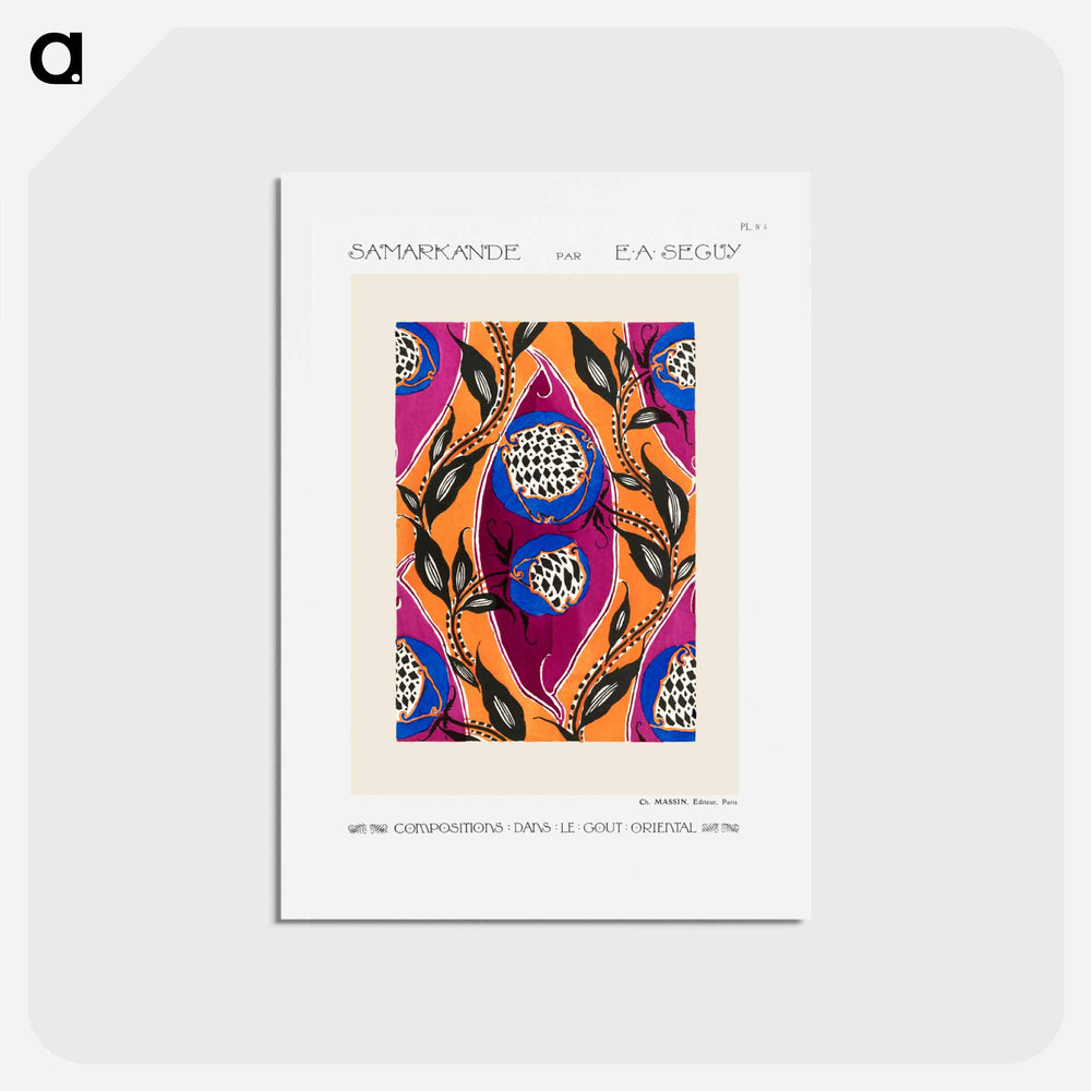 『サマルカンド』は、フランスの芸術家エミール=アラン・セギー(E.A.セギー)によって1914年に出版されたデザイン画集です。アール・ヌーヴォー様式とアール・デコ様式の美しいヴィンテージパターンを豊富に収録しており、セギーの独創的なデザインと鮮やかな色彩は、当時の装飾芸術界に新風を吹き込み、現代のデザイナーたちにもインスピレーションを与え続けています。
