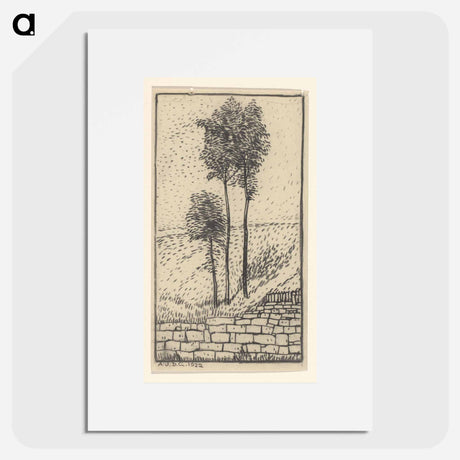 Drie bomen bij een stenen muur - ユリー デ フラーハ Poster.