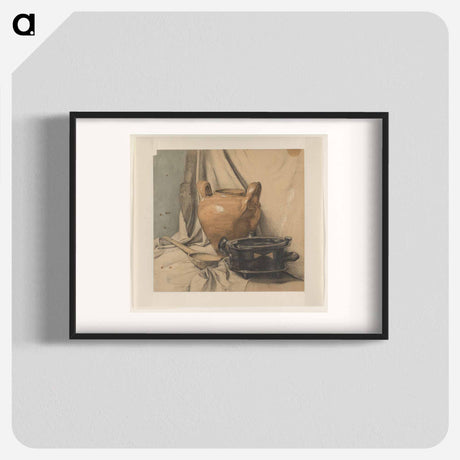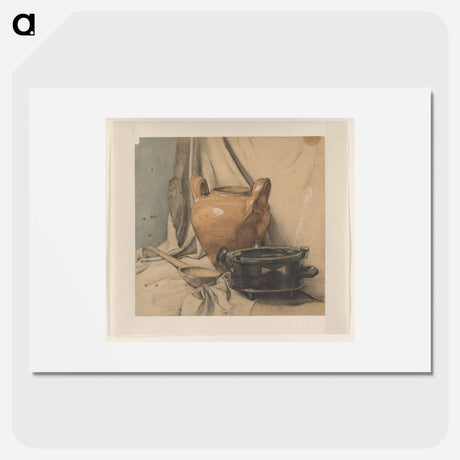 Stilleven met aardewerk en een houten lepel - ユリー デ フラーハ Poster.