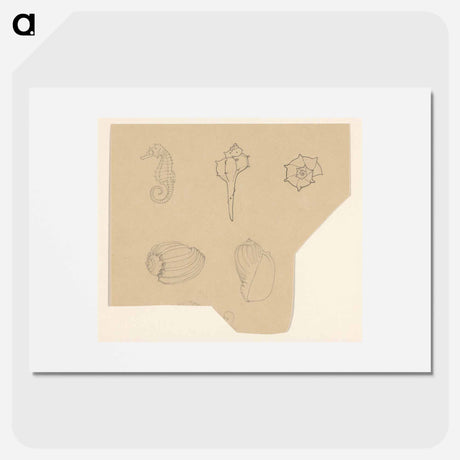 Studieblad met schelpen en een zeepaardje - ユリー デ フラーハ Poster.