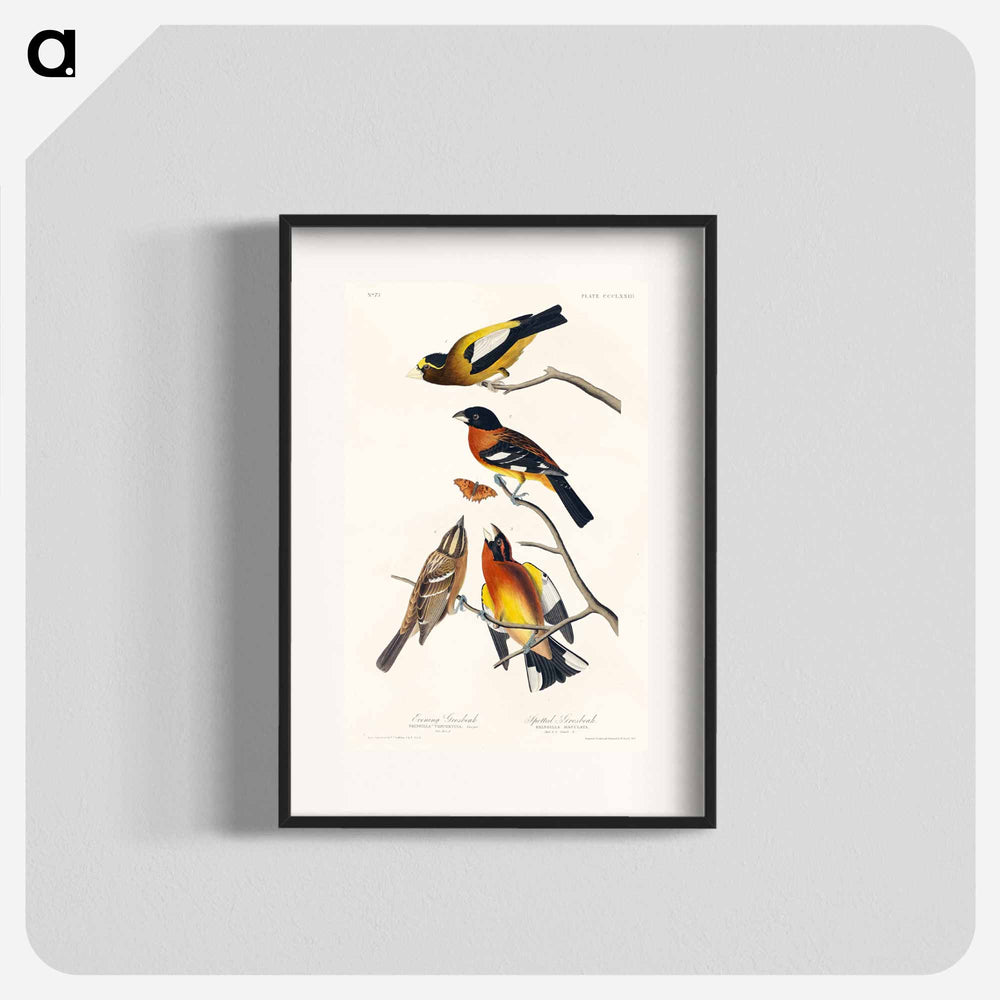 Evening Grosbeak and Spotted Grosbeak from Birds of America - アメリカの鳥たち Poster. - A5(148×210) / なし ...は取り寄せ中で入荷次第発送します。