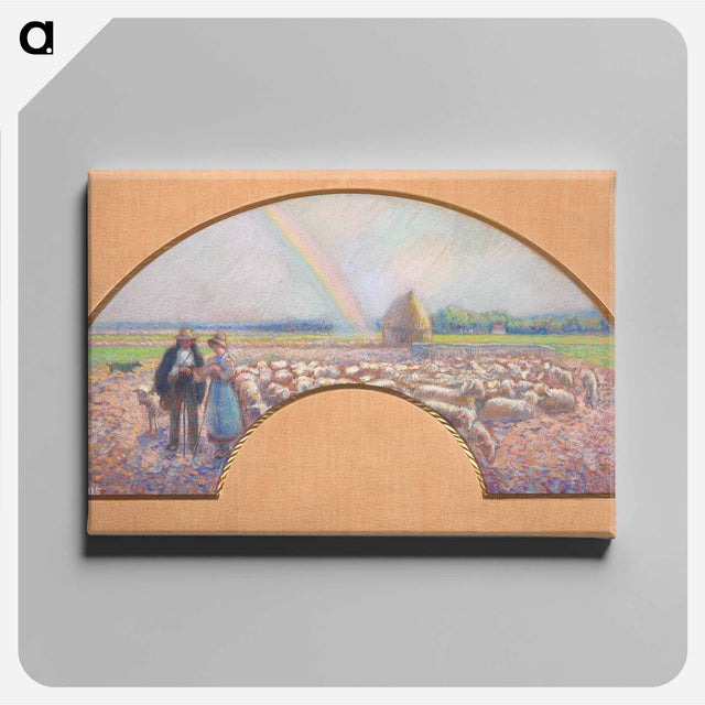 Shepherds in the Fields with Rainbow - カミーユ ピサロ Canvas.
