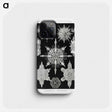 側面やカメラの周りなど細かいところまでしっかりプリントされた全面印刷タイプのスマホケースです。アートが映えるように機種ごとに構図を調整しています。