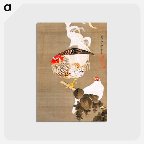 Hen and Rooster with Grapevine - 伊藤若冲 Canvas. - A5(148×210) ...は取り寄せ中で入荷次第発送します。