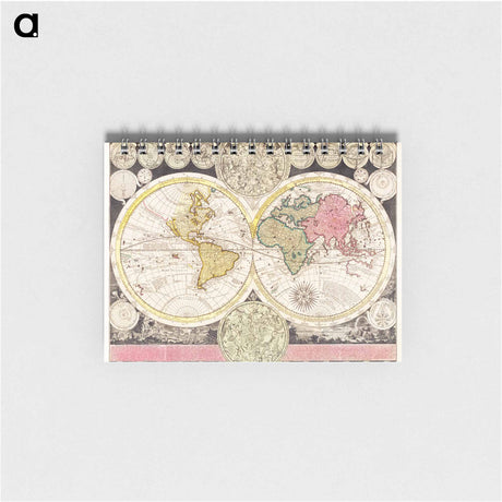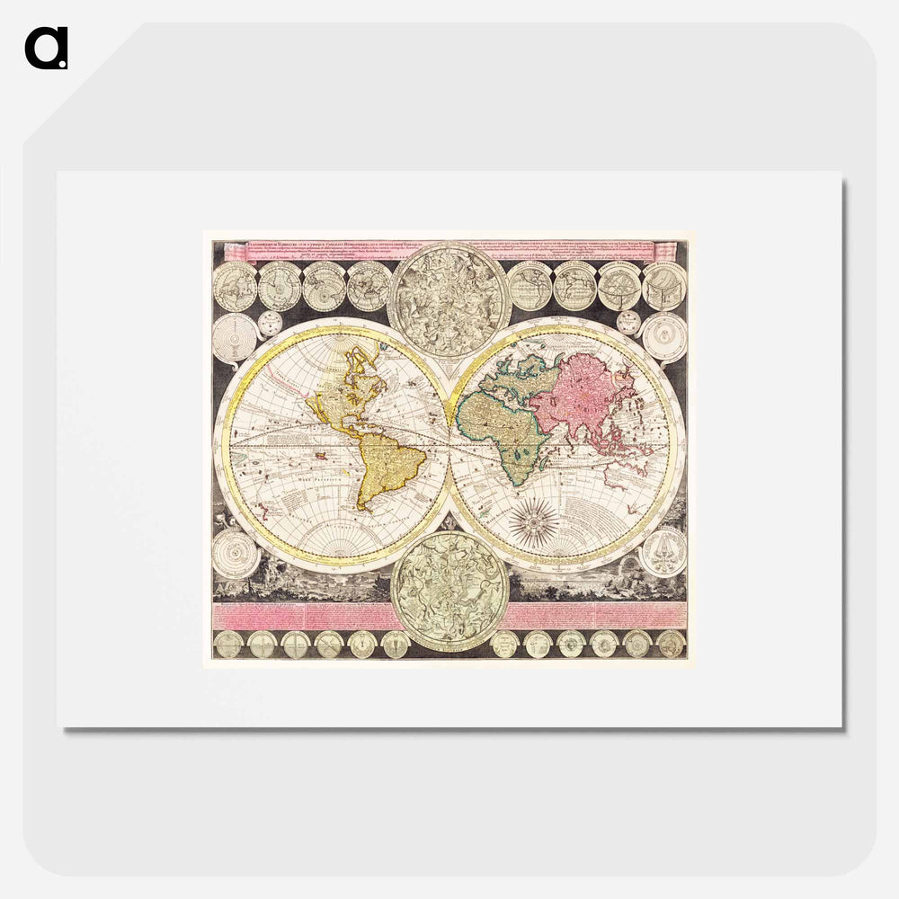 Vlakke aard-kloot met het beide hemelsch half-rond, of de onder scheidene verbeelding van de land-water-waereld - アンティーク地図 Poster. - A5(148×210) / なし ...は取り寄せ中で入荷次第発送します。