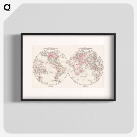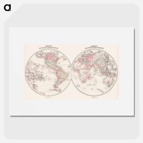 Johnson's Western Hemisphere [and] Johnson's Eastern Hemisphere - アンティーク地図 Poster.