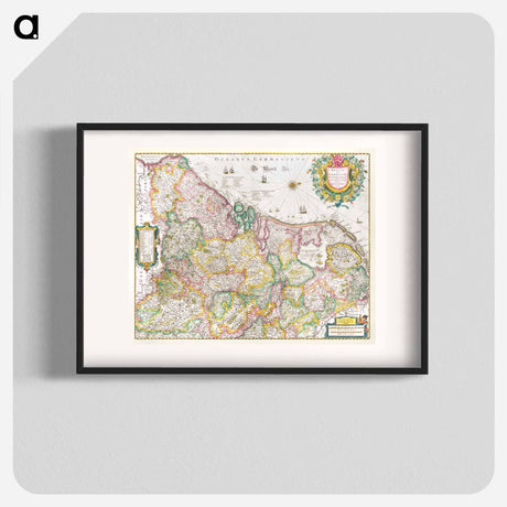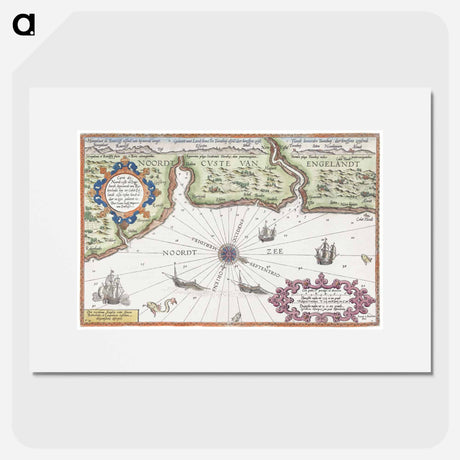 Kaart van de noordkust van Engeland bij Newcastle upon Tyne - アンティーク地図 Poster.