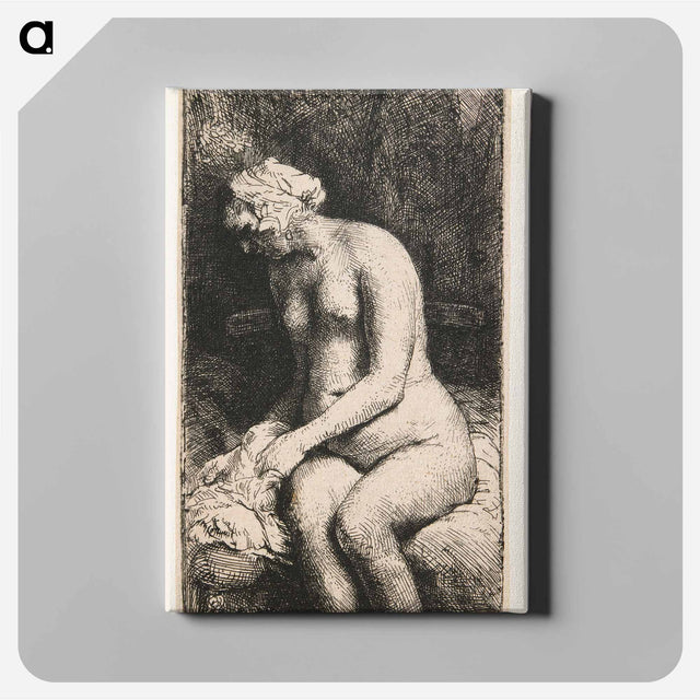Woman Bathing Her Feet at a Brook - レンブラント ファン レイン Canvas.