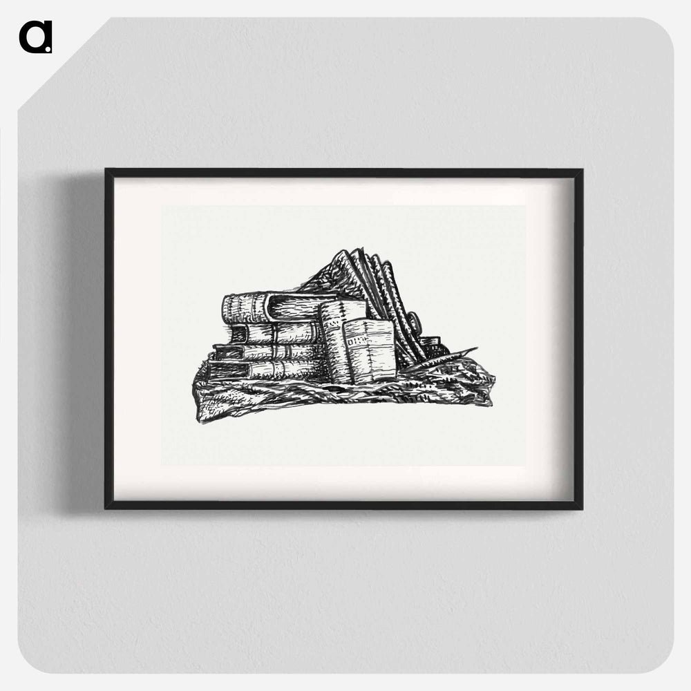 Stack of books and stationery - レオ ヘステル Poster. - A5(148×210mm) / なし ...は取り寄せ中で入荷次第発送します。