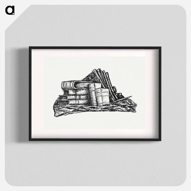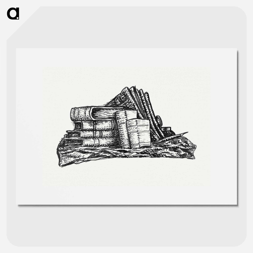 Stack of books and stationery - レオ ヘステル Poster.