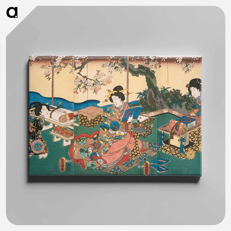 The Actor Ichimura Kakitsu in a Female Role Representing the Second Month - 歌川 国貞 Canvas.
