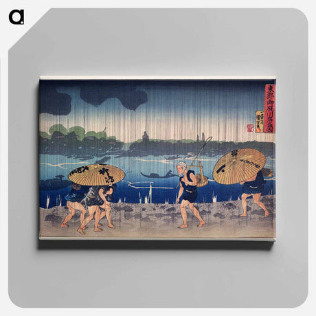 People Walking Beneath Umbrellas Along the Seashore During a Rainstorm - 歌川 国芳 Postcard.