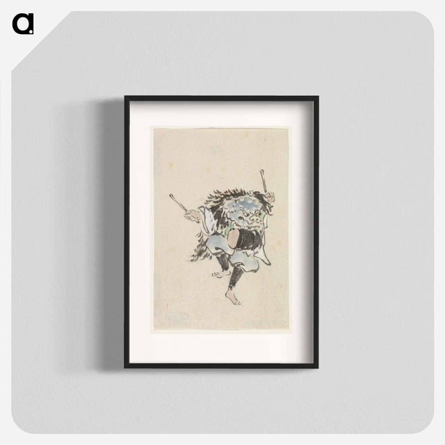 Danser met leeuwenmasker en trom - 歌川 国芳 Poster.