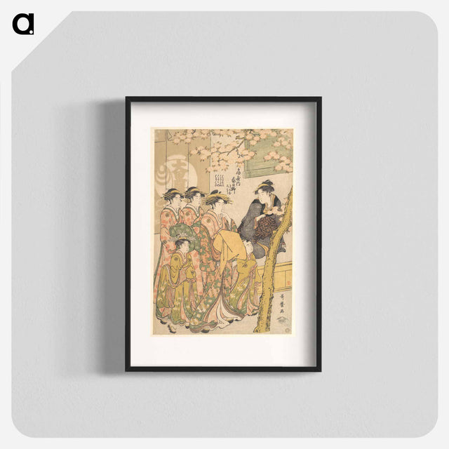 The Oiran Kasugano of Ogiya on Parade under Blossoming Cherry Trees - 喜多川 歌麿 Poster.