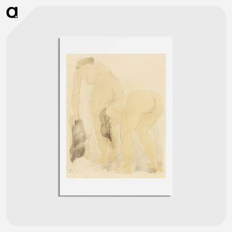Naked women bending over, vintage nude illustration - オーギュスト ロダン Poster.