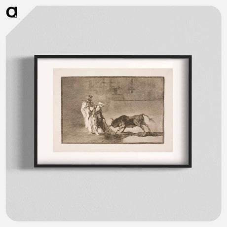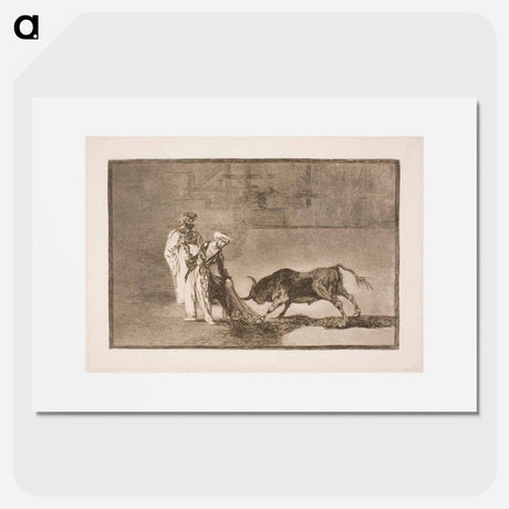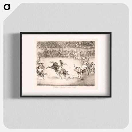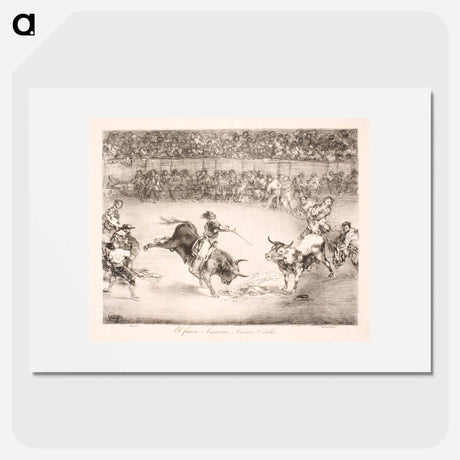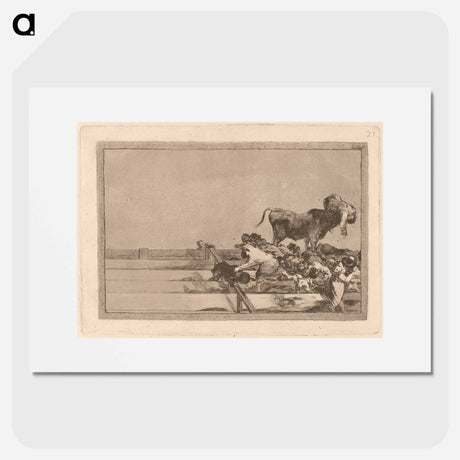 Two teams of picadors are one by one knocked over by a single bull - Francisco de Goya Poster.