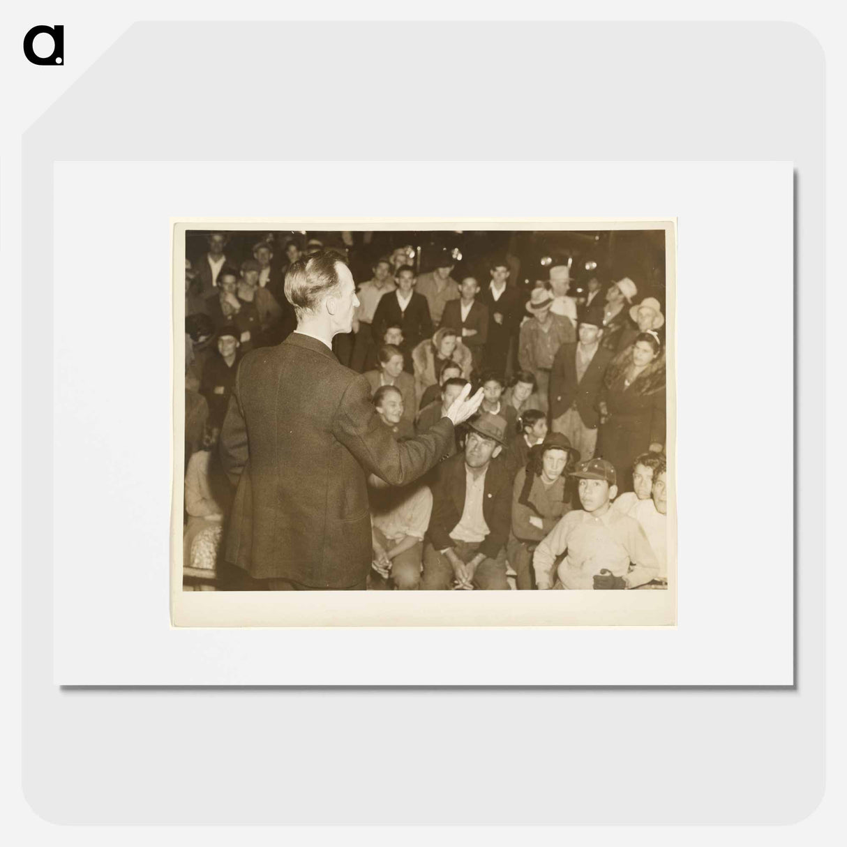 Organizer for the United Cannery Agricultural Packing and Allied Workers of America (CIO) Addresses Street Meeting of Striking Farmers, Mexican Town, outside Shafter, California - Dorothea Lange Poster. - A5 (148×210mm) / none is backordered and will ship as soon as it is back in stock.