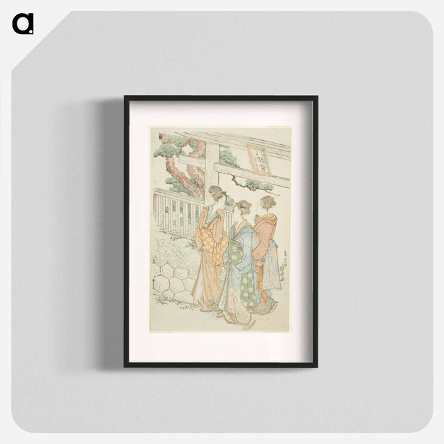 Visitors to the Hachiman shrine - Katsushika Hokusai Poster.