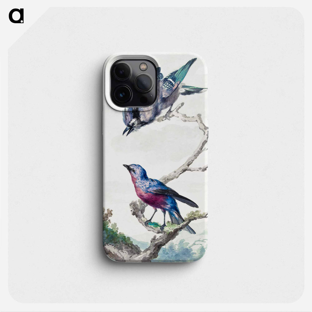 Two birds: a blue jay and a purple-breasted cotinga - アールト シューマン Phone Case. - iPhone 16 is backordered and will ship as soon as it is back in stock.