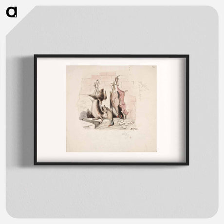 Asetelma, jossa on kuollut jänis, heinäsorsa, peltopyy, nyljetty jänis ja kana - アンダース エクマン Memo.