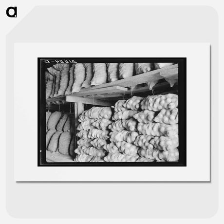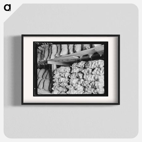 Fifty-pound bags of onions in storage shed, ready for market - Dorothea Lange Poster.