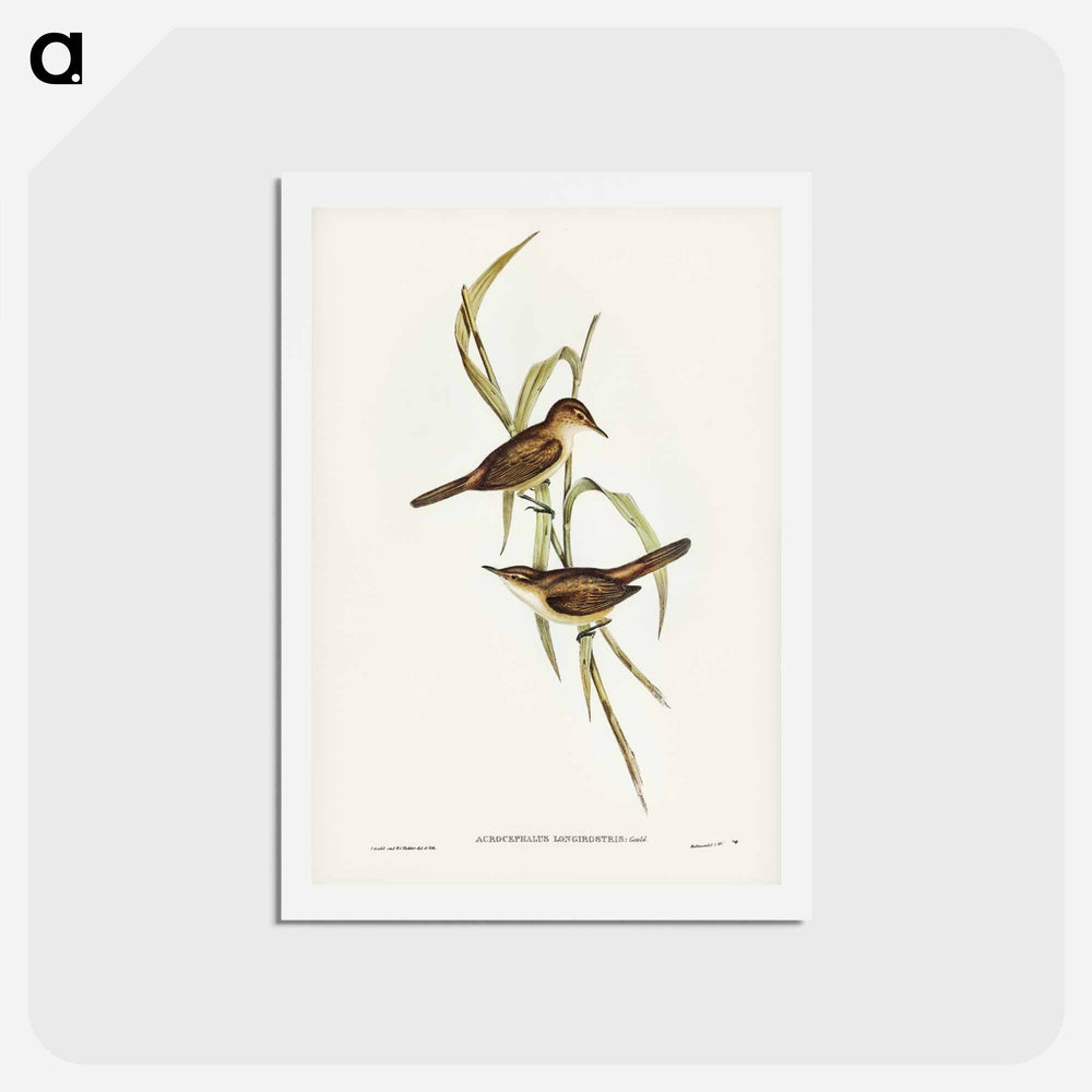 Long-billed Reed Warbler - ジョン グールド Postcard.