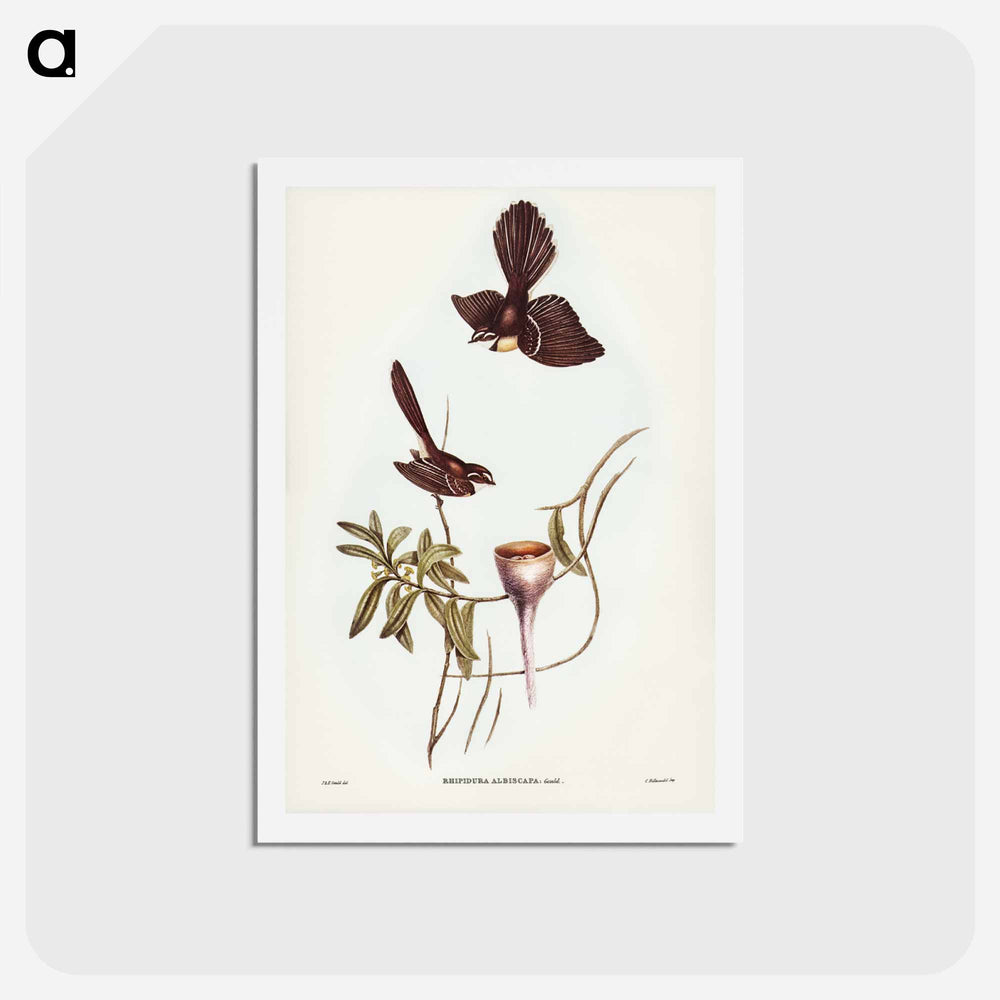 White-shafted Fantail - ジョン グールド Postcard.