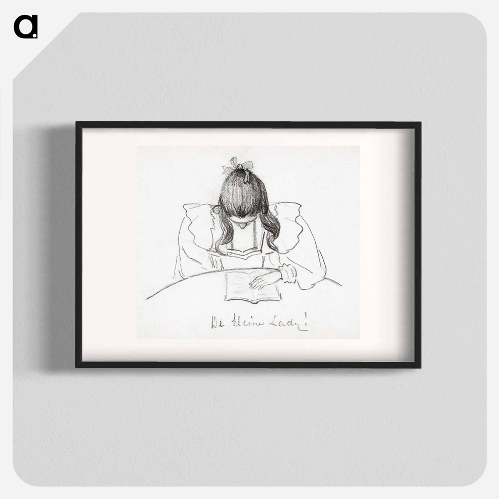 Girl sitting at a table with her head bent over an open book - Julie de Gragues Poster. - A5 (148×210mm) / none is backordered and will ship as soon as it is back in stock.
