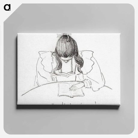 Girl sitting at a table with her head bent over an open book - Julie de Gragues Poster.