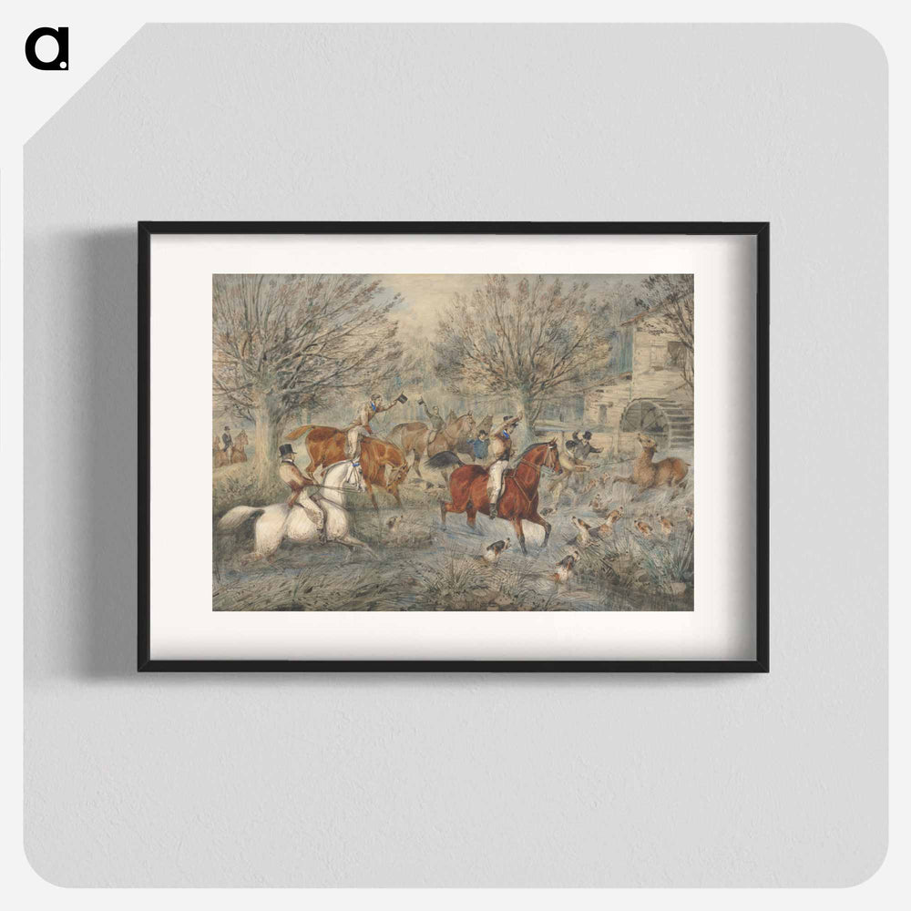 Stag Hunting - The Hind at Bay: In a Mill-Stream Below a Water-Mill, Right. - イェール大学アートギャラリー Poster.