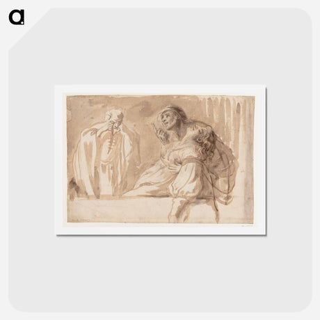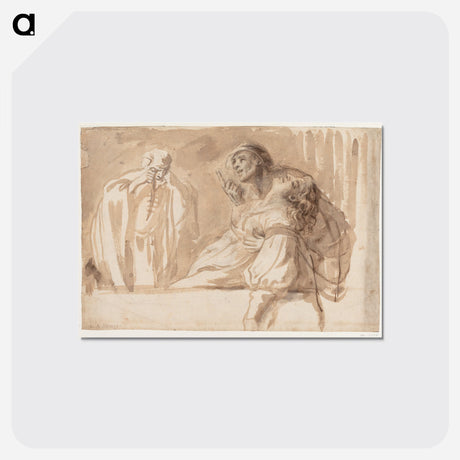 The title is "A young man points upwards while supporting a dead or passed out woman". - Caravaggio Canvas. - A5(148×210) is backordered and will ship as soon as it is back in stock.
