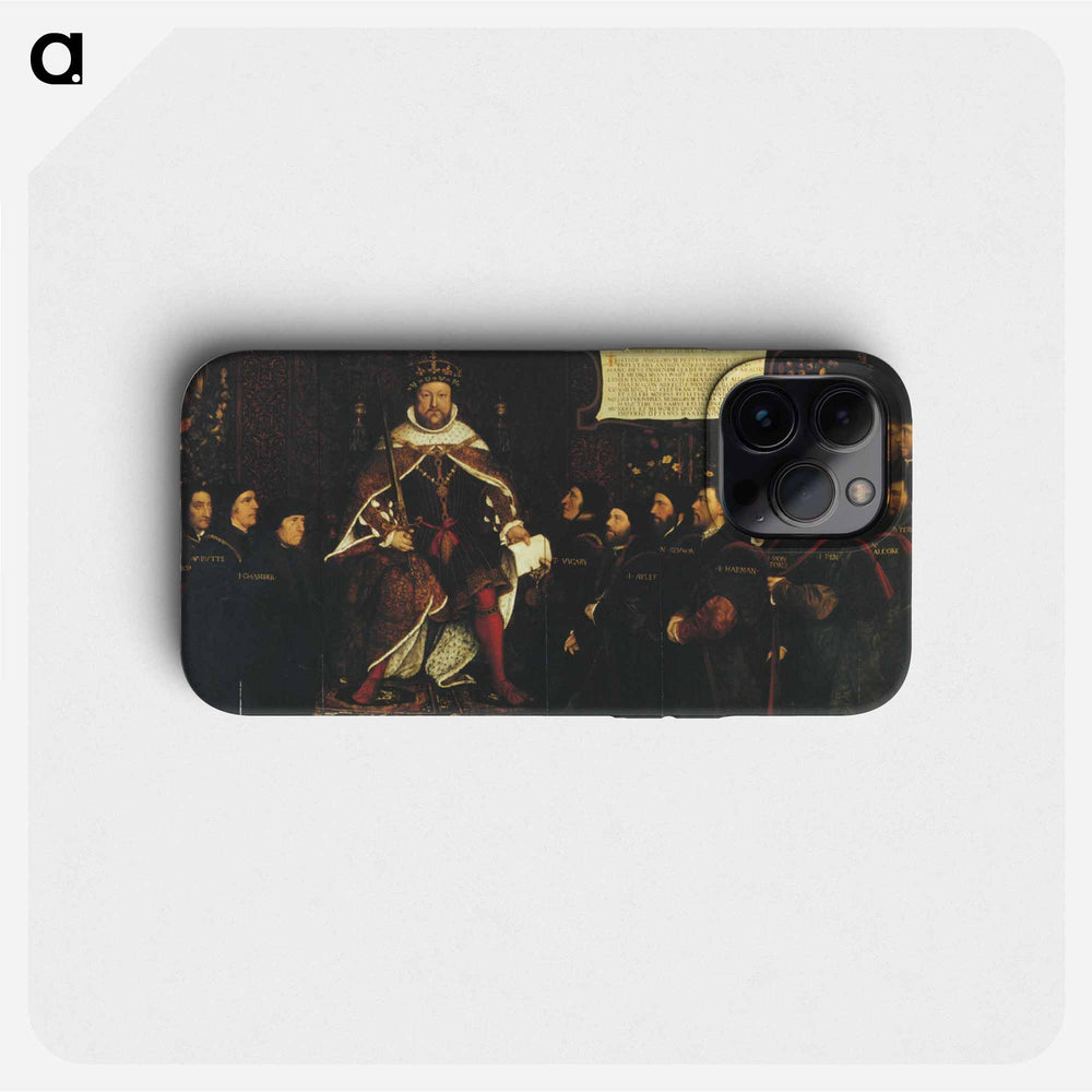 Henry VIII handing over a charter to Thomas Vicary, commemorating the joining of the Barbers and Surgeons Guilds - ハンス ホルバイン Phone Case. - iPhone 16 is backordered and will ship as soon as it is back in stock.