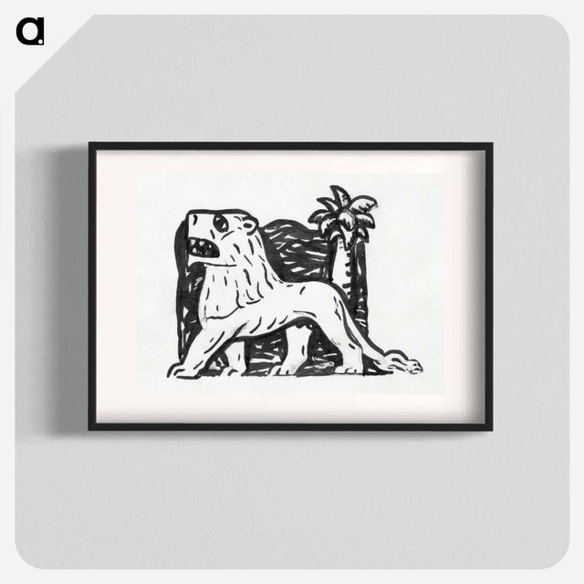 Lion stands in front of a palm tree - Leo Gerstel Poster.