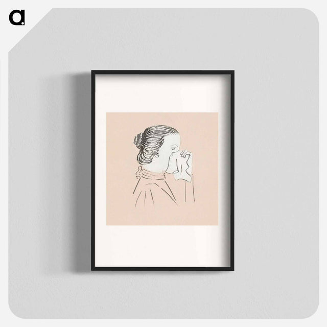 Head of a woman with a handkerchief against her nose - Julie de Graag Poster. - A5 (148×210mm) / none is backordered and will ship as soon as it is back in stock.