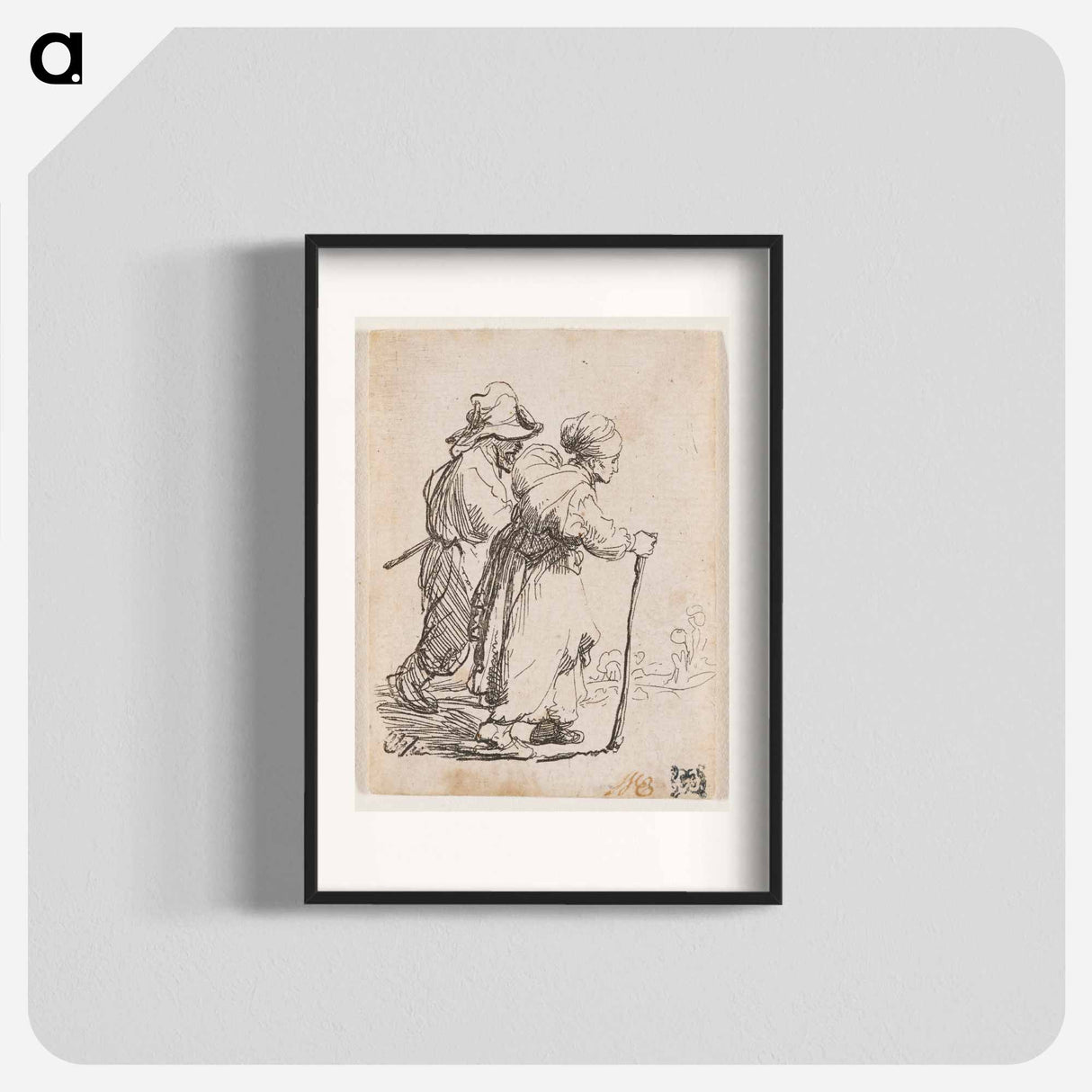 Rembrandt van Rijn's man in background and woman in foreground walking toward the right edge of the picture plane - Rembrandt van Rijn Poster.