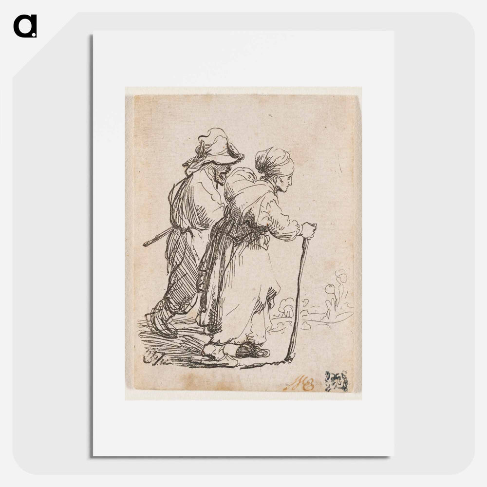 Rembrandt van Rijn's man in background and woman in foreground walking toward the right edge of the picture plane - Rembrandt van Rijn Poster. - A5 (148×210mm) / none is backordered and will ship as soon as it is back in stock.