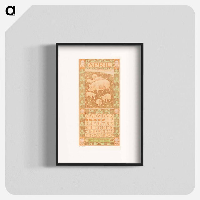 Kalenderblad april met varkens - Theo van Hoytema Poster.