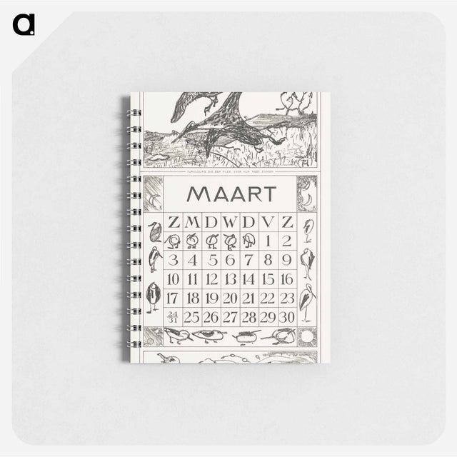Kalenderblad maart met tureluurs - テオ ヴァン ホイテマ Memo.