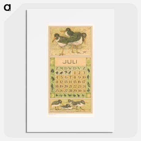 | Title | Calendar page for July with a bar-billed godwit |