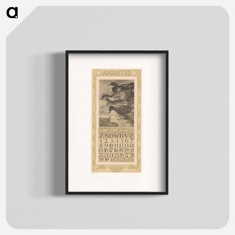 | Title | Calendar page of August with three swimming ducks |