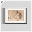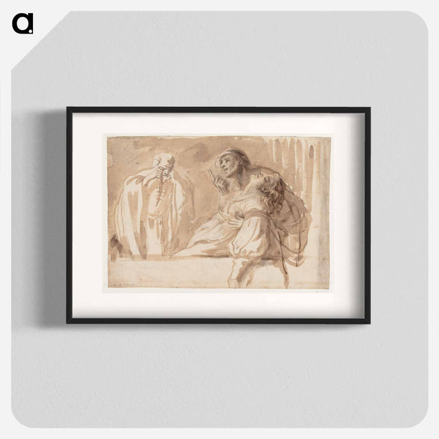 The title is "A young man points upwards while supporting a dead or passed out woman". - Caravaggio Poster.