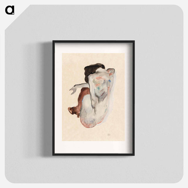 Naked lady. Crouching Nude in Shoes and Black Stockings - Egon Schiele Poster.
